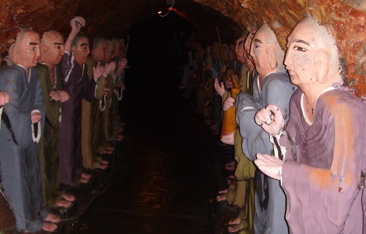 自然的鬼斧神工造就了這座地下宮殿,人類的智慧又賦予它豐富的文化色彩。開發(fā)后,吊水壺溶洞終于得見天日,這幅優(yōu)美的地下長卷在封閉了三億年后展現(xiàn)于世。為了方便游人的出入和加強(qiáng)旅游景點(diǎn)的建設(shè),洞口筑成龍頭的形狀,被俗稱為“老龍口”。從龍口進(jìn)入后,一架高32米的龍形旋梯可把游人引入洞內(nèi);在第一大廳中,根據(jù)吊水壺的傳說故事,筑成了小白龍和黑蟒精廝殺的模型,此外,還增添八仙醉瑤池、靈霄寶殿、如來佛、觀音菩薩、麒麟送子等人造景觀,達(dá)到了自然與人文的完美結(jié)合。