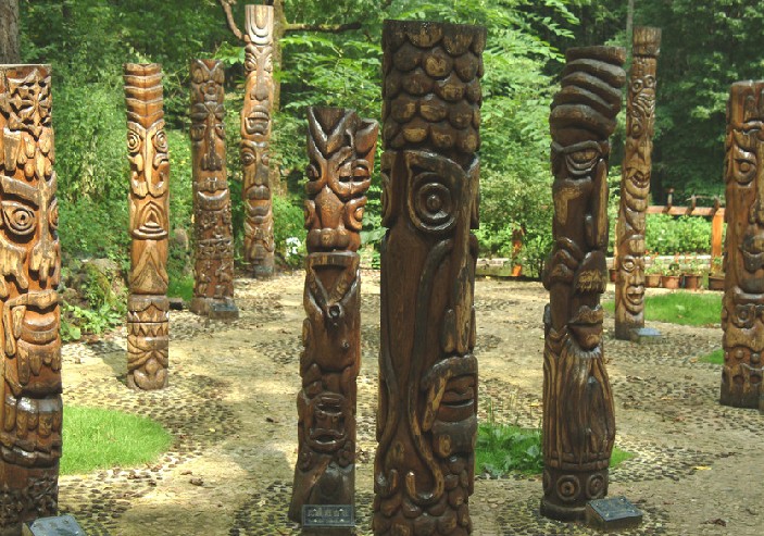 薩滿圖騰林,一共有 15 根圖騰柱,上面雕刻的神像形態(tài)各不相同,因?yàn)樗_滿教是原始的多神教, 是在“萬物有靈”的觀念支配下所形成的一種多神崇拜。 滿族人信仰的神靈很多,但是薩滿教沒有廟宇和神祠,也沒有專職的掌教和祭主等神職人員。信奉此教的人們,在族人中自發(fā)形成一位“察瑪”,主管每次祭祀天地、山神、土地和祭祖、許愿等重大活動(dòng)。 神靈,則多用木雕或繪畫的形式體現(xiàn)。