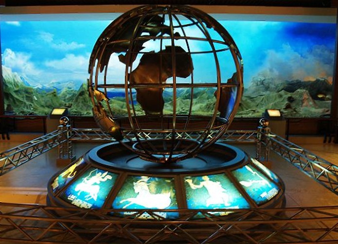 大連自然博物館的展覽是以“自然與人”為主題進(jìn)行設(shè)計(jì)的。當(dāng)觀眾步入館內(nèi)的陳列大廳時(shí),首先躍入眼前的是由肯尼斯•貝林先生于2003年捐贈(zèng)的非洲象,肩高3.0米,體長(zhǎng)約5.1米,尾長(zhǎng)1.5米,體重約6000公斤。后面是一幅長(zhǎng)22米,高3米的大型浮雕,他們將“自然與人”藝術(shù)而完美的融合在一起,氣勢(shì)宏大而壯觀,充分體現(xiàn)了濱城特色和陳列展示主題。