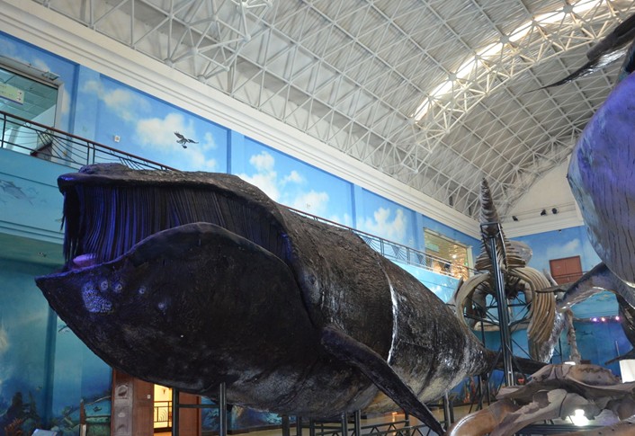 巨鯨展廳的展示主題是“海洋巨獸”。巨鯨是地球上現(xiàn)生的最大動(dòng)物。幾個(gè)世紀(jì)以來,由于世界各地沿海國(guó)家的大規(guī)模捕殺活動(dòng),使巨鯨的資源遭到了嚴(yán)重破壞,其種群數(shù)量正在銳減,有的鯨類數(shù)量已到了難以恢復(fù)的境地,甚至面臨滅絕的危險(xiǎn)。體型碩大的巨鯨令人驚奇且著迷,人們一生中很難有機(jī)會(huì)親眼見到這些龐然大物。本展廳展示了我館收藏的部分巨鯨外形和骨骼標(biāo)本,有重達(dá)66.7噸的黑露脊鯨、52噸重的抹香鯨和34.7噸重的長(zhǎng)須鯨等,這些館藏標(biāo)本在世界各地的其他博物館都難得一見。