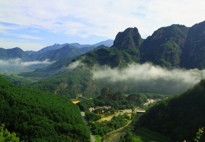 關門山素有“東北小黃山”之稱,景色有五美:山美,山峰奇峭,拔地而起,峰頂松姿綽約,怪石林立,宛若天造地設的巨型盆景。水美,關門山水庫碧波蕩漾,兩崖青山倒映,搖槳劃船,其樂無窮。樹美,關開山樹木繁多,千枝競秀,尤以楓林秋色而聞名。云美,云、山、美、霧渾然一體,分外嬌嬈,近年輕霧繚繞,撲朔迷離;遠處云蒸霞蔚,織云弄巧;山峰若隱若現(xiàn),嫵媚含羞。