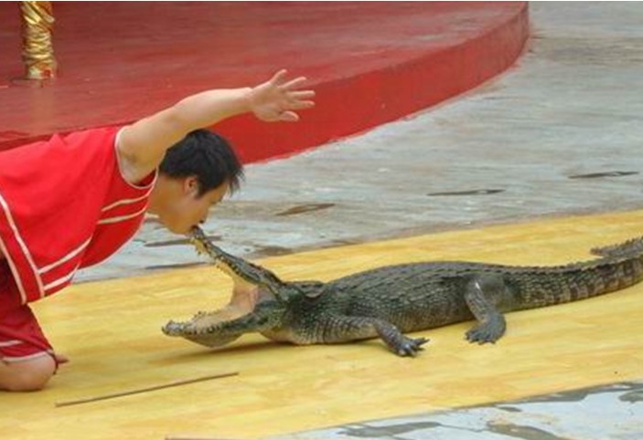 洋信鱷魚園是全世界種類最齊全、節(jié)目最豐富的鱷魚中心,園內(nèi)建設(shè)呈現(xiàn)原始質(zhì)樸風(fēng)格,彌漫著熱帶雨林神秘浪漫氣息,是休閑度假、旅游觀光的上佳去處。 娛樂項(xiàng)目有露天觀鱷嬉戲園,可垂釣幼鱷、投喂成鱷、玩笑大鱷;有泰國人鱷魚表演場,具逗樂接吻、騎背抱舉、鱷口求生驚險(xiǎn)節(jié)目;有鱷魚海鮮美食樓,版權(quán)所有山東聊城聊之旅國際旅行社有限公司,轉(zhuǎn)載必究!香港名廚主理,進(jìn)口鮮美鱷肉,配輔海鮮美食,可一飽口福;還有鱷魚溫控觀賞室,四季如春,鱷魚密集,冬季觀鱷,別有風(fēng)味。