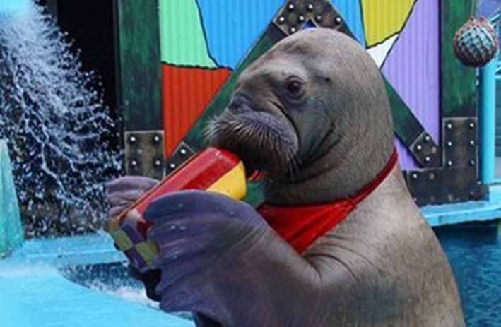 2.《功夫海象》表演——圣亞“三大表演”之一,海象海獅主演,國內唯一能模仿邁克爾•杰克遜跳舞的功夫海象,風格幽默搞笑,游客可參與互動。