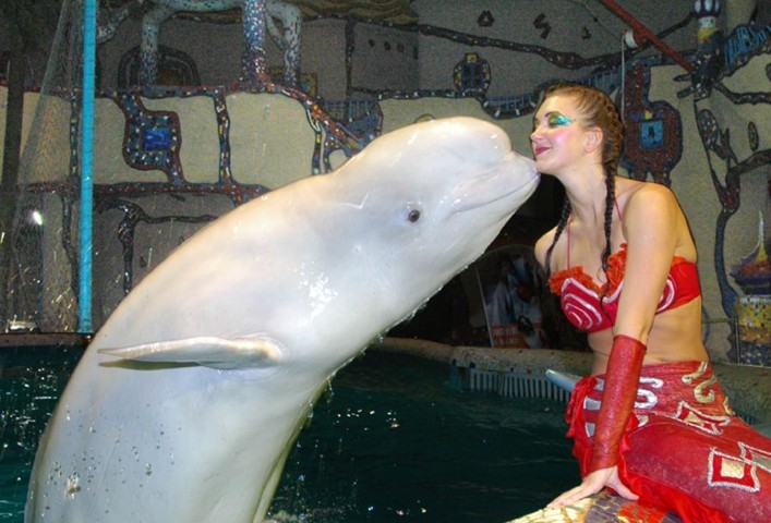 海豚和白鯨是來自不同海域的動物,將它們放到一個表演池中表演,是海洋動物表演的突破。