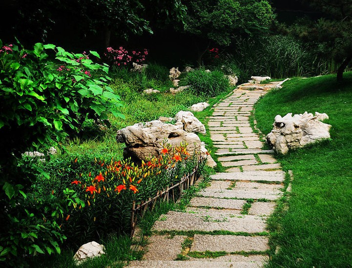 園內(nèi)山勢(shì)起伏,碧草如毯,石徑曲折,花溪蜿蜒,四季樹(shù)木蔭翳,春來(lái)繁花似錦,一座座名人雕塑錯(cuò)落有致地分布其中,或坐、或立,靜謐安詳,栩栩如生,平添了許多文化氣息。 在這里人文景觀與自然景觀水乳交融,加之陣陣幽香襲人,絲竹之聲悠揚(yáng),如詩(shī)如畫(huà),令人陶醉。一對(duì)對(duì)新人不知為景致所動(dòng)還是為氣氛所染,總不忘在結(jié)婚大喜之日來(lái)到這里, 于雪紗翠坪間留下永恒的美好回憶。于是,便有了“碧水映綠樹(shù),美景襯佳人”之說(shuō)。在喧囂塵世中身心疲憊的都市人閑暇之時(shí)來(lái)到這里,便仿佛走進(jìn)了世外桃源,或賞景、或垂釣、或閑坐小酌都會(huì)心清氣爽,流連忘返。