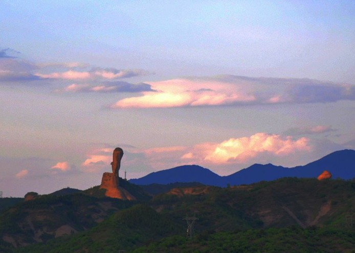 位于避暑山莊南部松鶴清樾北山峰頂。是“康熙三十六景”第十二景。為一方亭。每當(dāng)夕陽西照,漫天紅紫。此時,東山的磬錘峰金碧輝煌,宏偉壯麗??滴?、乾隆、嘉慶曾在近黃昏時率文武百官及少數(shù)民族王公貴族,登亭舉行蒙古風(fēng)味的野宴,并觀看磬錘峰落日余下的雄奇俊秀的景象。