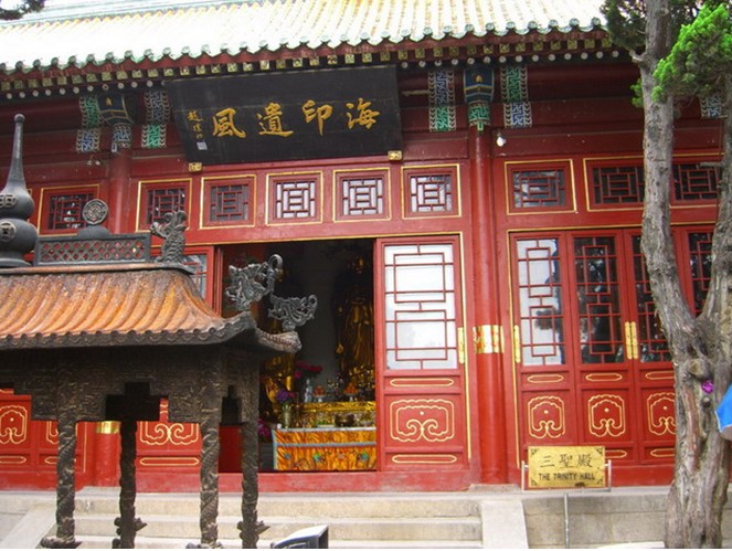 青島華嚴寺,位于青島嶗山區(qū)王哥莊鎮(zhèn)返嶺后村西那羅延山上,屬于佛教臨濟宗。為嶗山中現(xiàn)存唯一佛寺。在明崇禎時(1628--1644)即墨人明代御史黃宗昌捐造,名華嚴庵,亦稱“華嚴禪院”,在寺的西邊山上,后毀于兵火。清初黃坦助慈沾禪師重建于今址,1931年改今名。清初重建后,整體建筑宏偉典雅,為嶗山古代建筑藝術(shù)之最,原為四進院落,有殿堂、僧寮、客房130余間,建筑面積2500余平方米,占地面積4000余平方米。