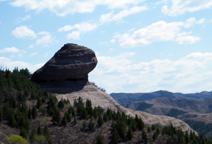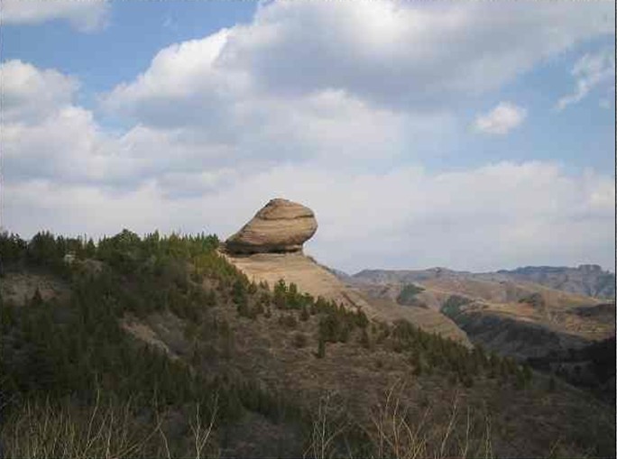 在承德市武烈河?xùn)|岸馨錘峰的東南端。隔一條山谷,有一巨大的巖石,踞于群峰之巔,似一青蛙欲躍蒼穹,故名。是承德十大自然勝景之一。 蛤蟆石,長約二十米,高四十多米。蛤蟆頭探出懸崖,腹下有南北兩個(gè)空洞,洞室南北相連,東西貫通,南洞最大,高一米八,寬八米,縱深九米。夏天游覽至此,可納涼消暑。蛤蟆脊背由承德礫巖中的卵礫石組成。顆顆卵石,光滑細(xì)膩,構(gòu)成了凹凸別致的紋體。其背地勢比較平坦,大小可容納數(shù)十人。