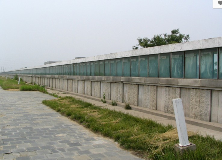 碑體由巖石基座和1093個盛有黃河水樣的方形玻璃水罐組成, 東西長790米,高2.5米,寬0.9米。碑斷面構造自下而上依次為:毛石基礎、淺白色花崗巖碑座、鋼化玻璃水罐、碑頂。黃河水樣取水工程由水利部黃河水利委員會動員系統(tǒng)員工于1994年8月27日10時,版權所有山東聊城聊之旅國際旅行社有限公司,轉載必究!同時從黃河源頭到入海口每隔5公里取水0.5立方米,共取1093個水樣,分別注入刻有經緯度的方形玻璃罐中,按取水順序自源頭至入??谝来闻帕?。