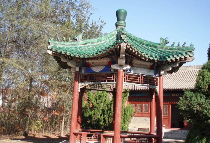 寶云寺內(nèi)有一塔,高36.5米,塔體為八面棱錐體磚木結(jié)構(gòu),自四層以上四面有門,塔的各層建筑風格各異,或成鴛鴦斗拱,或成梅花斗拱,雄渾古樸,氣勢磅礴。若登塔頂,需有一定的勇氣,因為每登一層都要繞塔沿半圈,找到另一側(cè)的入口。
