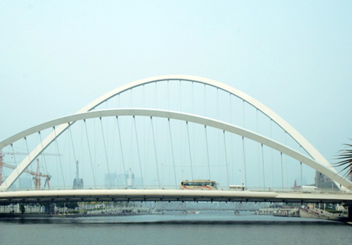 海河風(fēng)景線,始于三岔口,止于大光明橋,橫穿繁華的天津市區(qū)。它宛如一幅長長的風(fēng)景畫卷,景色包含美麗的海河公園、聞名于國內(nèi)外的望海樓教堂、雄偉壯觀的“老龍頭火車站”--天津站……但它最讓眷戀的卻是夜幕降下之后,海河流水閃爍的波光燈影的美,流動不息的美。那兩岸若明若暗的各色燈光,倒映在河中,浮如絢麗的彩霞,緩緩的流水,又把一道道彩霞送向遙遙的遠(yuǎn)方,使人們產(chǎn)生無限的遐思。在天津,有“七十二沽”之稱,海河還被一些人稱作“沽水”。于是,“沽水流霞”就這樣傳開了。
