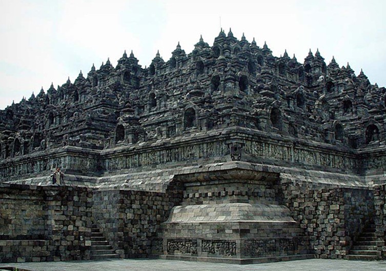 婆羅浮屠位于印度尼西亞,大約于公元750年至850年間,由當(dāng)時統(tǒng)治爪哇島的夏連特拉王朝統(tǒng)治者興建?!捌帕_浮屠”這個名字的意思很可能來自梵語"Vihara Buddha Ur",意思就是“山頂?shù)姆鹚隆?。后來因為火山爆發(fā),使這佛塔群下沉、并隱蓋于茂密的熱帶叢林中近千年,直到19世紀(jì)初才被清理出來。與中國的長城、印度的泰姬陵、柬埔寨的吳哥窟并稱為古代東方四大奇跡。