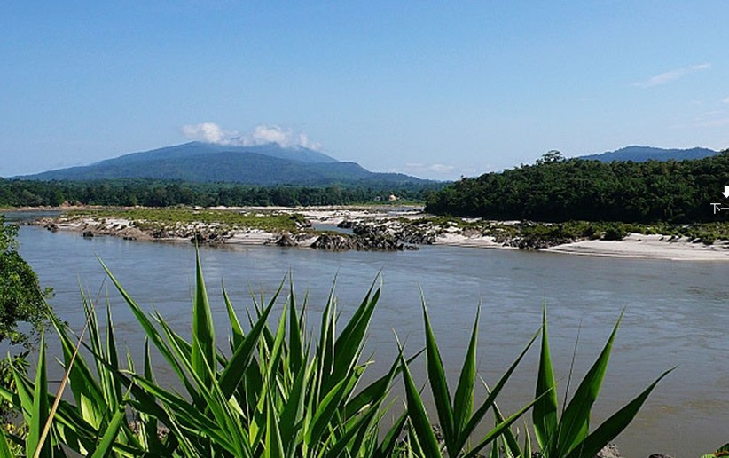 敏宋北距密支那43公里,又叫“三江口”,是恩梅開江和邁立開江的匯合處。敏宋是伊江的神來之筆,是克欽邦的精典景點。站在碩大的白體金塔前的草亭內(nèi),江風習習,俯瞰壯麗的三江口,頓覺胸襟開闊,思緒萬千。東邊那條叫恩梅開江,西邊這條就是邁立開江,兩江之間礁峭石奇,江水奔涌,在巨大的魚嘴石處交匯,合二為一,浩蕩南行,氣勢如虹。恩梅開江發(fā)源于西藏察隅縣境內(nèi),藏語叫“美爾東曲”;南下入云南怒江州貢山縣境后稱獨龍江;進入克欽邦后更名為恩梅開江。邁立開江源自中緬邊境的大雪山南麓,其東邊是江心坡,西邊是枯門嶺。這兩條江的性格一陰一陽,一剛一柔,陰陽結(jié)合后,便成了緬甸的“天惠