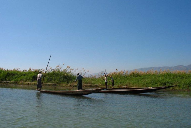 茵萊湖一帶的一萬多戶居民,大部分屬于茵達(dá)族,散居于湖邊的180多個村落中。他們主要以捕魚為主,勤勞樸實,殷實富足,熱情好客。也有相當(dāng)多的人在浮島上從事蔬菜種植或養(yǎng)蠶、紡織、打鐵、制作金銀手飾等。
