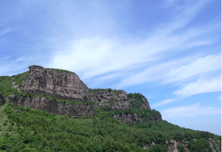 在安澤縣最東部良馬鄉(xiāng)與屯留縣交界處,雄踞著全縣最高的山峰——盤(pán)秀山。盤(pán)秀山古稱鹿瀆山。山呈西南——東北走向,西南高而東北低,山勢(shì)聳峙云端,逶迤彎曲,主峰高陡,支山重疊,其間鑲插有育紅嶺、摩訶嶺,連接著田石山、南屏山。主峰海拔1574米,直插云天異常峻峭,仰視山頂,大有“連峰去天不盈尺,枯松倒掛依絕壁”之感。山體巖石盤(pán)曲,蜿蜒百余里。由山底攀藤附巖爬至絕頂“會(huì)當(dāng)凌絕頂 一覽眾山小”的感慨油然而生。鳥(niǎo)瞰山容,山態(tài)、山情,神秘幽深,儀態(tài)萬(wàn)千盤(pán)秀山頂有座玉皇廟,共有三間,全部用巨石砌成,保持著宋代建筑的風(fēng)格,室內(nèi)還存有壁畫(huà)。在八泉鄉(xiāng)境內(nèi)盤(pán)秀山之陰朗,有一懸崖峭壁,高數(shù)十丈。峭壁之上有一清澈見(jiàn)底的泉水,泉水從峭壁直瀉而下,飛珠濺玉,大有“飛流直下三干尺”之勢(shì)。飛瀑之下積水一池,長(zhǎng)滿了肥美的河草,河草長(zhǎng)達(dá)兩丈多,浮出水面,碧草游魚(yú),十分引人。山下為絳河源頭,因山嚴(yán)岫盤(pán),孤峰峻峭,如盤(pán)龍之勢(shì),山坡松林密茂,百花爭(zhēng)艷,故人稱盤(pán)秀山。
