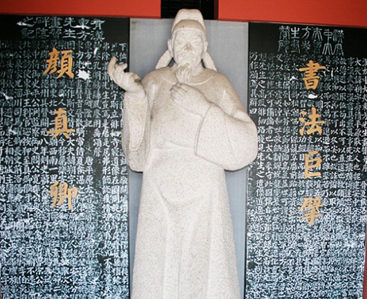 顏真卿(709-785),字清臣,唐代杰出的書法家、政治家。開元年間中了進(jìn)士,又舉制科,歷任縣尉、監(jiān)察御史、殿中侍御史、平原太守、尚書等職,經(jīng)歷玄、肅、代、德宗四代,是德高望重的老臣。后因得罪德宗的宰相盧杞,遭到陷害,被派到叛將李希烈處勸降,但遭到長達(dá)2年的拘禁,后被李希烈的部下縊殺。他為國殉難,以功業(yè)節(jié)操,被封為魯郡開國公,贈司徒,謚文忠,世稱“顏魯公”。