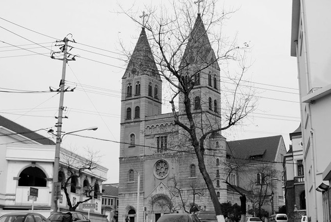 青島天主教堂本名圣彌厄爾教堂,由德國設(shè)計師畢婁哈依據(jù)哥德式和羅馬式建筑風格而設(shè)計。擬建教堂應(yīng)高百米,適逢二戰(zhàn)爆發(fā),希特勒嚴禁德國本土資金外流,該教堂不得不修改圖紙,即建成現(xiàn)在規(guī)模。教堂始建于1932年,于1934年竣工。