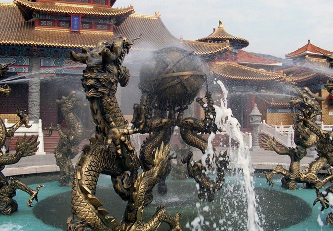 風(fēng)景區(qū)由民俗寨、水竹寨、平安寨、隱士寨、東夷古寨、將軍寨、紅云寨、磴山寨、旺里寨九寨組成: 第一個(gè)景區(qū):水竹寨——經(jīng)過“人間仙境”大門,進(jìn)入水竹寨,通過天潤亭游覽龍,鳳,龜,蛇,麒麟五瑞雕塑,中華水鄉(xiāng)、千水臺(tái),觀全國唯一的金瓦金鑾殿、御道過菏池,看石象、石佛、天外來客。
