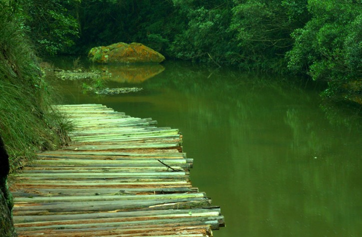 說到古道,其實(shí)我國歷史上的古道有很多種。其中一種是官道、大道,比如古人灞橋送別的古道,可以行車,寬大得很;所謂“長亭外,古道邊”,大概便是如此。有些是關(guān)外的大道,如陽關(guān)古道,荒涼曠遠(yuǎn),像《陽關(guān)三疊》中的景象展現(xiàn)眼前。西風(fēng)瘦馬相伴的山野古道,小而崎嶇。水項(xiàng)古道便是如此。 我們穿行于這條斑駁的古道上,路其實(shí)已不成為路,崎嶇、坎坷。兩旁茂盛的竹林顯得有些黑色,同行的“驢”友說這竹子可能得了病,言語中透著股無奈與擔(dān)憂。沿途我們偶爾還能看見隨意廢棄的小工棚,由此不難看出此處山民當(dāng)年艱辛的活動足跡。零零星星的,我們還見到有山民肩扛三四根竹子不辭辛勞地往來于兩地,真是想象不出當(dāng)年閩侯那一側(cè)的山民穿越古道來山腳下趕圩的情景是何等熱鬧。