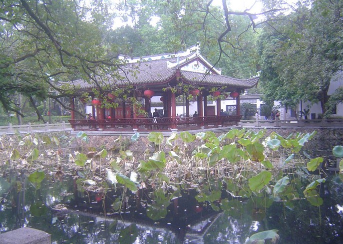 在開化嶼東,系閩中詩人紀念堂,明正德年間(1506-1521年)詩人傅汝舟營建。招詩友高濲等同來隱居。宛在堂木構(gòu)三楹,以詩名“孤山宛在水中央”為堂名。一時詩人云集,傳為佳話。清康熙四十一年(1702年)改建為湖心亭。乾隆十三年(1748年)黃任倡議復建,在堂中設(shè)立詩龕,作為福州詩壇同人吟詩聚會之地。后來堂為洪水沖毀。道光四年(1824年)重建。道光七年(1827年),林則徐丁父憂歸家,重浚西湖,借宛在堂為辦公場所。1914年,西湖辟為公園后,宛在堂修葺一新。此后,春秋皆有雅集,名人墨客薈萃吟詠。