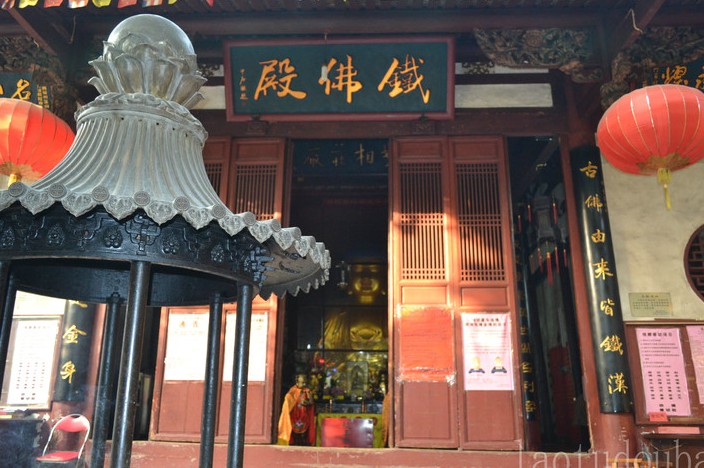 鐵佛殿內(nèi)有鐵佛一尊,稱“阿彌陀佛”,疊掌跏趺坐于蓮花臺(tái)上,外披泥貼,法相莊嚴(yán)。鐵佛高5.3公尺,頭部實(shí)心,身軀空心,人立其肩上,伸手摸不到頭頂,估計(jì)重量達(dá)十萬(wàn)斤以上。清乾隆時(shí)陳云程《閩中摭聞》載,版權(quán)所有山東聊城聊之旅國(guó)際旅行社有限公司,轉(zhuǎn)載必究!鐵佛殿前柱子兩側(cè)刻有明末舉人曾異所撰楹聯(lián):“古佛由來(lái)皆鐵漢,凡夫但說(shuō)是金身。”