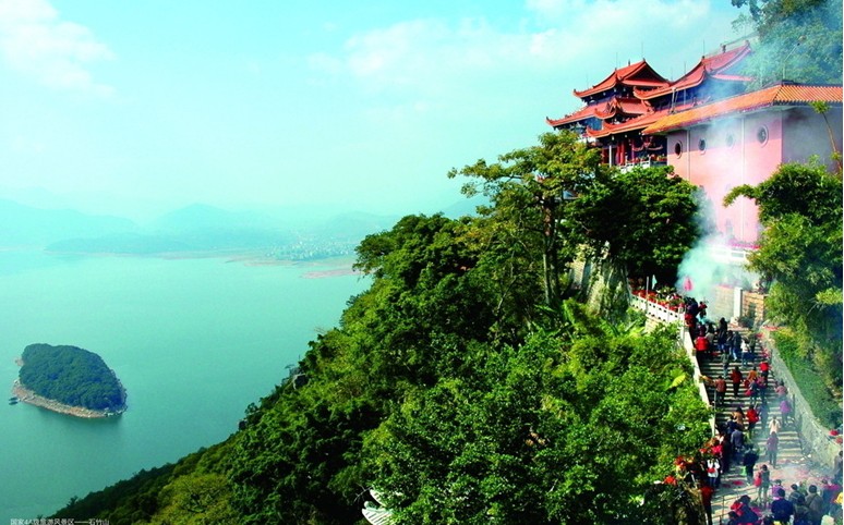 位于福州市南福清市西宏路鎮(zhèn),緊靠鯉魚湖,是福建省著名的風(fēng)景名勝。因山上石奇巖怪,竹松蒼翠,故名。 去石竹山,可在福州市乘長(zhǎng)途汽車至宏路鎮(zhèn),行車約2小時(shí)。到達(dá)宏路鎮(zhèn)向西即至東張水庫(kù),水庫(kù)西北方向,即為石竹山。石竹山屹立在危崖峭壁之上,從石竹山下步行而上,有兩條寬約1米的千級(jí)石階徑道曲折而上,即至石竹寺。石竹寺又名九仙閣,相傳在漢武帝劉乇時(shí),在福州市于山修煉的何氏九兄弟在此得道成仙,后人建筑九仙閣,以資紀(jì)念。九仙閣始建于唐大中三年(849年),宋、明重修,1979年又重修。寺內(nèi)有大雄寶殿、文昌閣、觀音亭、石佛宮等建筑,規(guī)模宏大。寺處景色秀麗,石竹山上有龜蛇石、小蓬萊、三重檐、青龍洞、通天洞、一線天、仙橋、紫云塔等0多處天然美景。寺西有一座龍女巖,傳說(shuō)為東海龍王的公主化身,近鄰還有九鯉仙醉臥巖,一條長(zhǎng)約丈許、寬約尺余的石條橫架其間,造化之功,維妙維肖,版權(quán)所有山東聊城聊之旅國(guó)際旅行社有限公司,轉(zhuǎn)載必究!此即"天橋"勝景。寺東可俯視東張水庫(kù),山水輝映,景物壯觀。宋代朱熹、明代徐霞客、清代陳寶琛均到過(guò)石竹山,且留下題匾。 歸時(shí)可順路去福清市西的瑞云塔、彌勒巖一游。