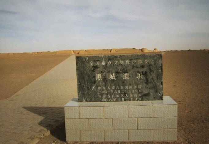 黑城遺址位于內(nèi)蒙古額濟納旗達來呼布鎮(zhèn)東南25公里處,是古絲綢之路上現(xiàn)存最完整、規(guī)模最宏大的一座古城遺址。該城建于公元九世紀的西夏政權(quán)時期。公元1372年明朝大將馮勝攻破黑城后遭廢棄。至今城內(nèi)還埋藏著豐富的西夏和元代等朝代的珍貴文書。近年來,由于周邊地區(qū)沙化嚴重,流沙從東、西、北三面侵蝕黑城,許多遺址已埋于沙下。文物保護工作者呼吁有關部門盡快行動起來,搶救性保護黑城遺址。