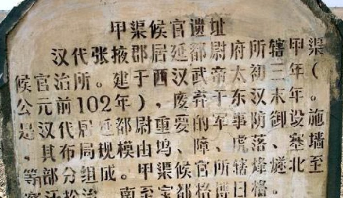 甲渠候官遺址俗稱破城子,位于額濟(jì)納旗南24公里,納林、伊肯河之間的戈壁灘上。為漢代居延都尉西部防線甲渠塞之長(zhǎng)——甲渠候駐所。發(fā)掘前,遺址大部分為砂礫掩沒。往西300米,南北排列“一”字形烽燧和雙重塞墻遺跡。