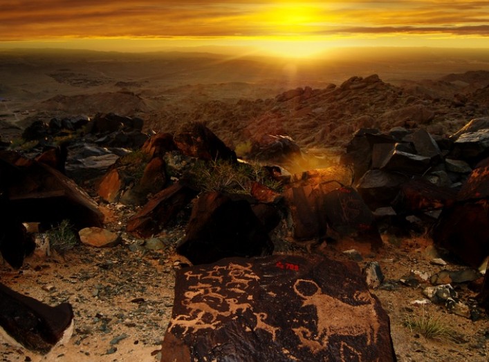 在阿拉善高原上有一座形狀奇特的山脈,山上黑石嶙峋,巖脈蜿蜒,周?chē)薮蟮膸r石皆成圓形,酷似隕石分布,一條崎嶇小路不見(jiàn)盡頭,這便是曼德拉山。蒙語(yǔ)曼德拉是漢語(yǔ)“升起來(lái)”的意思。專(zhuān)家考證,早在新石器仰韶文化時(shí)期,阿拉善大地上便有了人類(lèi)活動(dòng)的足跡。