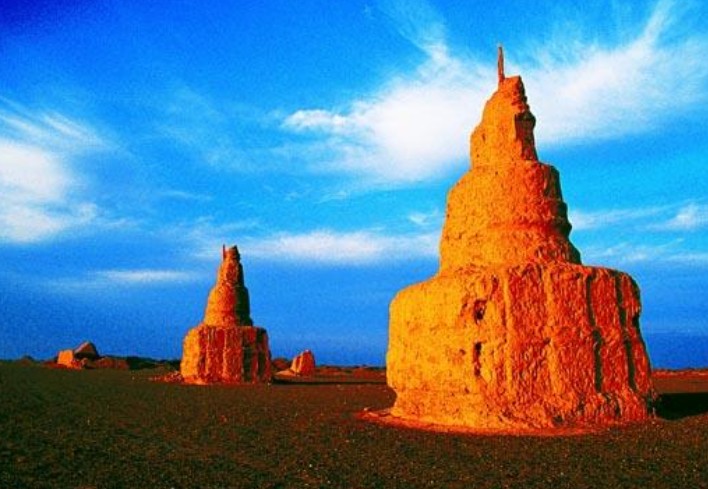 居延文化遺址:漢代時,居延、肩水兩都尉均為張掖郡所轄,因此將其所建邊塞城、障、烽、燧、塞墻等遺址現統(tǒng)稱居延遺址。