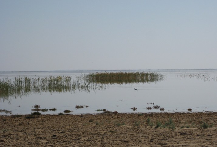 傍晚時(shí)分,科考隊(duì)驅(qū)車前往天鵝湖,據(jù)說(shuō)那里是居延?,F(xiàn)存海子中湖水最多的地方,我們的心是沉重的,不知道這個(gè)有著如此優(yōu)美名字的湖泊會(huì)不會(huì)如我們想象中那么美好,是不是能讓我們稍微感受一下當(dāng)年蘆葦叢生的景象呢?