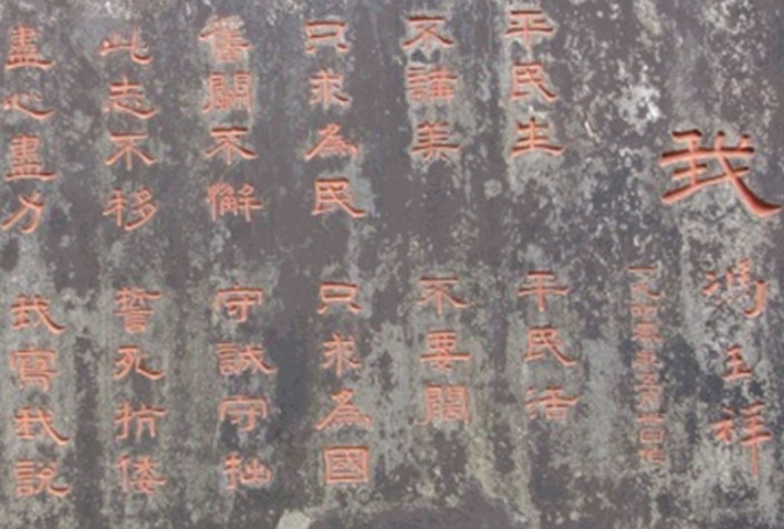 1953年碣刻馮玉祥詩(shī)《我》,嵌入墓壁。碣高1.09米,寬1.9米,隸書(shū)。