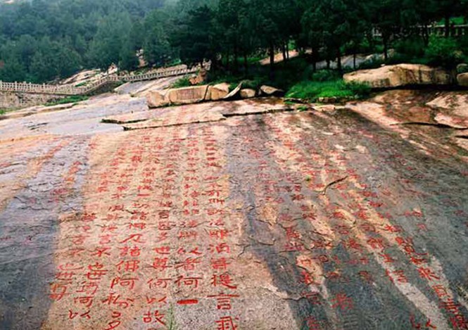 在泰山中路的“經(jīng)石峪”山谷,有一座石亭,名為“高山流水亭”該石亭為明代建筑,建于隆慶六年(1572年),據(jù)今已有429年的歷史。據(jù)《岱覽》中記述:“伯牙游于泰山之陰,卒遇暴雨,止于巖下,援琴而鼓之。”《列子•湯問篇》中說,“伯牙鼓琴志在高山,鐘子期曰,善哉,峨峨兮若泰山,志在流水,”并因此而建此亭,并命名為“高山流水亭”。 石亭全部為石質,通高3.3米,寬兩米,為正方形,周邊四根石柱,下有四根踢腳石,上面石橫梁、插板、脊石橫梁各四根,亭頂坡面極平緩,頂部有一四方形石脊。亭內橫梁上方刻有“高山流水亭”之字。亭外橫梁上方寫有“源頭活水”,正面右柱上書有“天門倒瀉一簾雨”,左為“梵石靈呵千載文”之字。意思是說,下雨時,雨水猶如天門上倒下的水簾,水簾漫過“經(jīng)石”時,似乎在大聲吟詠石上的千年佛經(jīng)。“高山流水亭”上方有巨幅石刻《高山流水亭記》,詳細記載了“經(jīng)石峪”水簾的生動和該亭建立的經(jīng)過。“高山流水亭”建立之后,當時有人在此觀景,版權所有山東聊城聊之旅國際旅行社有限公司,轉載必究!并形容之:“瀑流千派,飛噴字畫,上構石亭一,寬容數(shù)人,危壁在后,雪浪在前,每風鳴雨響,萬籟俱怒。”明代山東巡撫李戴有詩專門描寫該亭:“壁立石屏向日明,小亭危坐午風清,彈琴人去知何日,尚有高山流水亭。”