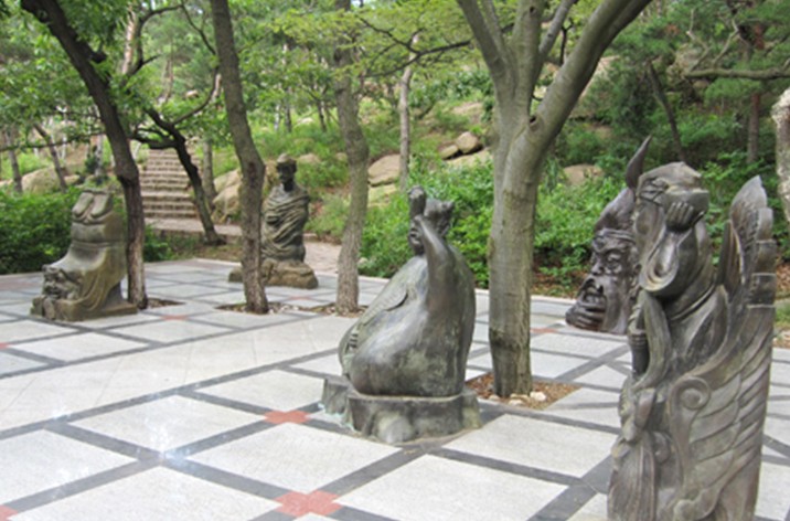 位于張保皋南面的赤山明神銅像,高33.8米,總投資4500萬(wàn)元,占地十二萬(wàn)平方米。由大明圣境、仙人棋盤(pán)、東峰觀景臺(tái)、明神銅像及其它附屬建筑組成。大明圣境牌坊題名由著名書(shū)法家劉炳森題寫(xiě)。牌坊南墻的青銅浮雕“眾仙朝神”眾仙列班朝拜,聽(tīng)候赤山明神號(hào)令的情景。“仙人棋盤(pán)”由“神閑氣定”、“運(yùn)籌帷幄”、“成竹在胸”、“觀戰(zhàn)之悅”、“駕鳳臨仙”、“悔恨難解”六個(gè)人物小品組成。版權(quán)所有山東聊城聊之旅國(guó)際旅行社有限公司,轉(zhuǎn)載必究!主要內(nèi)容是各路神仙會(huì)聚赤山對(duì)弈的場(chǎng)景。人間的棋局,竟然讓天上的神仙情不自禁,于是,喜怒哀樂(lè)溢于言表,性情體態(tài)栩栩如生。“赤山明神”銅像高58.8米,面朝浩瀚的黃海,雄壯威武。赤山明神亦稱赤山神,相傳明神本相出于赤山紅門(mén)洞。赤山明神威鎮(zhèn)四海,法力無(wú)邊,守護(hù)鄉(xiāng)土,福佑大千,功德無(wú)量,乃華夏北方庇佑之神。始皇并六國(guó),于贏政二十八年(公元前219年)東巡成山,以求長(zhǎng)生不老之藥。途大病,李斯遽祈明神,旋無(wú)恙。唐高宗顯慶五年(公元660年),唐政府幫助新羅人(今韓國(guó))打敗高麗和百濟(jì),統(tǒng)一朝鮮半島,自此唐和新羅非常友好,關(guān)系密切。很多新羅人來(lái)到唐朝學(xué)習(xí),做官,做生意,出苦力,當(dāng)兵,做船工,當(dāng)奴婢,有的長(zhǎng)期居住在中國(guó),主要分布在東南沿海和大運(yùn)河沿岸地區(qū),特別是和新羅僅一海相隔,相距不足200海里海上交通樞紐赤山浦(今石島灣),居住的新羅人就更多了。法華院宣講《法華經(jīng)》時(shí),“四方眾信及有緣施主都會(huì)聽(tīng),道俗老少尊卑都是新羅人。”(據(jù)《入唐求法巡禮行記》一書(shū))為了對(duì)新羅人進(jìn)行管理,特設(shè)了“勾當(dāng)新羅所”。新羅人除去赤山法華院參拜佛祖,祈求保佑外,也去紅門(mén)參拜赤山神。尤其在赤山法華院建立之前和拆毀之后,主要參拜的是赤山神,赤山神也就不分國(guó)界施恩于新羅,因此新羅人就把他當(dāng)作自己的神。稱之為“新羅神”大韓民國(guó)文化部、海運(yùn)航海廳、全羅南道韓國(guó)文化藝術(shù)振興院編著的《張保皋》一書(shū)中說(shuō):“有關(guān)日本九州博多太守府的史書(shū)記載,圓仁弟子按照宗師遺囑建立的比睿山赤山禪院里繪制的‘新羅神’臨近寺剎(例:圍城寺和三井寺)里供奉的新羅國(guó)的‘大明神’等有關(guān)記載,都明確無(wú)誤地說(shuō)明了張保皋人把日本比睿山赤山禪院里供奉的‘赤山神’當(dāng)作自己的神——‘新羅神’了。該書(shū)還說(shuō):“在博多太守府內(nèi),常駐有許多從事貿(mào)易的新羅人,而在此之前,就定居在九州一帶的新羅人,也多從事貿(mào)易業(yè)。”張保皋對(duì)日本的影響,在其后日益明顯,如前所述的赤山禪院比睿山周圍的寺剎里,供奉的象征著保護(hù)財(cái)富,帶來(lái)運(yùn)氣,保護(hù)航海安全的“新羅神”(赤山神),說(shuō)明新羅人以及張保皋所組織國(guó)防貿(mào)易船隊(duì),是把“赤山神”當(dāng)作自己神了。唐文宗開(kāi)成三年(公元838年),東瀛天臺(tái)宗三世座主圓仁(慈覺(jué)大師)隨遣唐使赴唐求法數(shù)載,曾三赴赤山拜謁。歸途中,于滄海屢遭劫難,幸明神顯靈,方化險(xiǎn)為夷,且保全經(jīng)典數(shù)百卷。圓仁歸國(guó),遂以赤山明神為天臺(tái)宗庇佑之神供奉,其后弟子秉承其旨意,于京都修一寺院,名之曰:“赤山禪院”。而后,赤山明神漸為東瀛等國(guó)所崇拜,乃至波斯、大食等區(qū)域。至今,日本、韓國(guó)等寺院仍多供奉赤山明神,以福佑天下,普渡蒼生。 據(jù)《后漢書(shū)》載,赤山明神是中國(guó)古代原北方系鮮卑族之保護(hù)神。版權(quán)所有山東聊城聊之旅國(guó)際旅行社有限公司,轉(zhuǎn)載必究!他不僅是中國(guó)民間的保護(hù)神,也是日本、韓國(guó),甚至波斯、大食(阿拉伯)等諸多國(guó)家民間的保護(hù)神。尤其是韓國(guó)、日本的許多禪院里如今仍供奉著赤山明神。