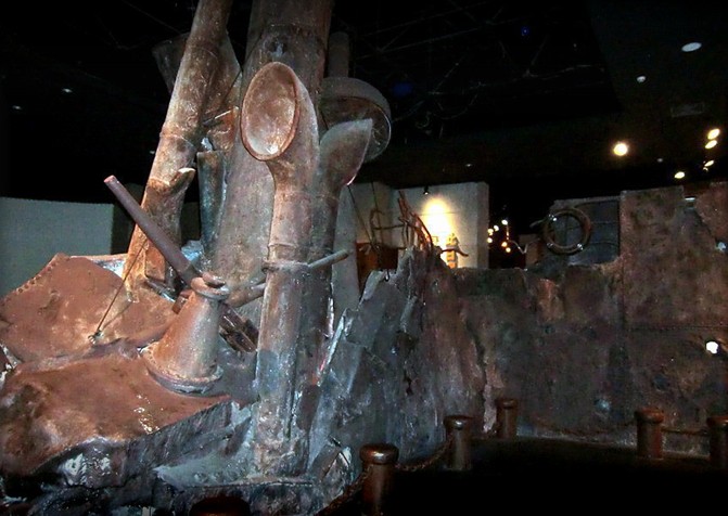 “定遠”級軍艦的生活區(qū)主要集中在主甲板下的第一層,簡稱下一甲板。下一甲板的艦首部位,是一間面積較大的西式軍醫(yī)院,置有手術(shù)臺、病床等設(shè)施。軍醫(yī)院與鐵甲堡之間,分布著廚房、禁閉室、警衛(wèi)室等功能艙室。進入鐵甲堡區(qū)域后,首先在地板上會看到有6個大型的艙蓋,下面是全艦的彈藥庫所在,彈藥便是從這里提升出來后,運往全艦各炮位的,與之配套,在下一甲板的天花板上裝有軌道和天車,用于提升和運送彈藥。過了彈藥艙出口,有2個巨型曲軸搖臂,數(shù)十名水兵將通過轉(zhuǎn)動這2根搖臂來驅(qū)動甲板上方的4門305毫米大炮。再往后走,整個區(qū)域被煙囪豎井和發(fā)電機房占滿(“定遠”配備3臺發(fā)電機、“鎮(zhèn)遠”只有2臺),中間零散布置著官兵們的浴室。走過這個區(qū)域便出了鐵甲堡進入艦尾,沿襲帆船時代的傳統(tǒng),艦尾是軍官們的生活區(qū)域。這塊區(qū)域的中央是2間軍官餐廳,這是軍官們用餐、聚會,以及娛樂交際的場所,里面放置著鋼琴、酒柜、餐桌,并與西方軍艦敬奉圣像一樣,這里供奉著中國的戰(zhàn)神——關(guān)公的牌位,另外還擺放有做工精細的“定遠”級軍艦原廠模型,黃海海戰(zhàn)前的軍事會議便是在這里召開的。在會議室外面,兩側(cè)則分布著各個軍官的住艙,艙門上的歐式銅牌表明了一間間艙房的功能。軍艦最后面的空間整個都是屬于艦長的,里面包括艦長的辦公室、臥室、浴室、個人的會客室等等,整個區(qū)域裝修異常豪華。艦長會客室的墻壁上釘著一塊橢圓形的銅牌,版權(quán)所有山東聊城聊之旅國際旅行社有限公司,轉(zhuǎn)載必究!西式的繩紋圍繞著漢字“定遠”/“鎮(zhèn)遠”。相對于軍官,普通水兵們的生活空間要可憐得多,他們并沒有專門的休息場所,吃飯、睡覺、工作都在同一地點。為滿足海上航行時的生活需要,“定遠”級軍艦艙內(nèi)設(shè)有20座淡水爐,海水淡化機每日制造出的淡水能供應(yīng)全艦300余人使用。