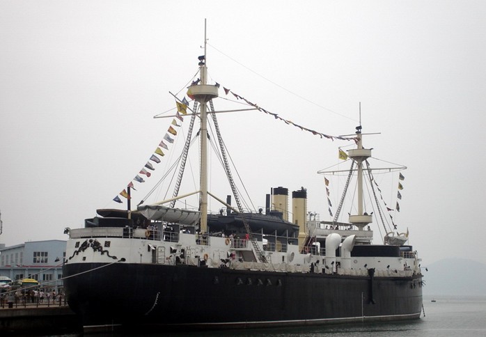 1894年9月17日,以“定遠(yuǎn)”、“鎮(zhèn)遠(yuǎn)”為首的北洋水師主力在黃海大東溝海域與日本海軍聯(lián)合艦隊(duì)主力進(jìn)行了一場(chǎng)決戰(zhàn)。“定遠(yuǎn)”艦中彈159發(fā),“鎮(zhèn)遠(yuǎn)”艦中彈220發(fā),“定”、“鎮(zhèn)”二艦的裝甲和炮塔護(hù)甲上的彈坑沒(méi)有超過(guò)102毫米的,顯示出二艦的頑強(qiáng)生命力。