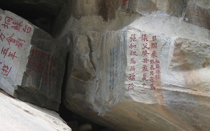 山谷流泉中的3處年代最早的石刻都是唐代的,它們均分布在石牛古洞東壁懸崖上。其中2處是唐代著名散文家,哲學(xué)家李翱任舒州刺史時游覽山谷的題名。李翱字習之,隴西成紀(今甘肅秦安)人。貞元進士,授校書郎,后任國事博士。元和十五年以后任廬州刺史、舒州刺史,長慶二年(822年)壬寅游石牛古洞。所刻題名為“翱炅磷盤求壬寅年下元日習之書”、“挎儲弘運上卿盤長慶二年十月廿六日馀奉處交口”,均為真書,或橫排,或豎書直排。還有一處唐代13人題名石刻,系舒州刺史李德修于寶歷二年(826年)所刻。此刻楷書15行,上下豎書成行,字徑7厘米,書法遒勁渾厚。版權(quán)所有山東聊城聊之旅國際旅行社有限公司,轉(zhuǎn)載必究!據(jù)《唐書》載:李德修于寶歷時出任舒州,后任尚書,為唐代著名的文學(xué)家。