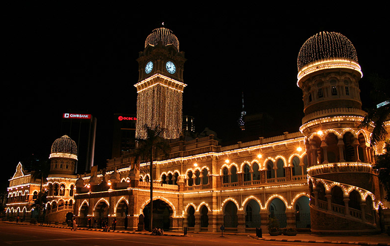 蘇丹亞都沙末大廈是高等法院及最高法院所在地,是吉隆坡的標(biāo)志性建筑。1897年建成,曾經(jīng)是殖民者的總部。當(dāng)初設(shè)計(jì)這幢大樓的兩名設(shè)計(jì)師都曾在印度呆過一段時(shí)日,他們把大樓設(shè)計(jì)成印度和阿拉伯風(fēng)格奇妙的混合體。樓的中央有一個(gè)40米高的鐘樓,鐘樓的造型類似英國的“大本鐘”,被稱為馬來西亞大本鐘,但在鐘樓的頂部加上一個(gè)金色的半球形圓頂。