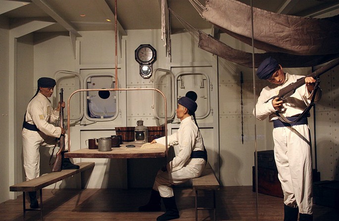 館內(nèi)以歷史文物、圖片資料及沙盤(pán)、模型、塑像、影視等手段,系列展示了北洋海軍與甲午戰(zhàn)爭(zhēng)的歷史過(guò)程,北洋海軍將士捍疆衛(wèi)國(guó)、勇于犧牲的愛(ài)國(guó)壯舉。