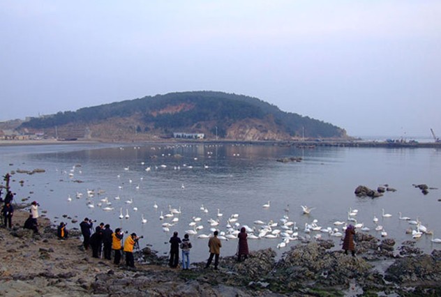 這是一個(gè)人與自然和諧融洽的榮成漁村。村東崮山上古時(shí)建有御敵于警的烽火臺(tái)(也稱(chēng)煙墩),所以村名煙墩角。因村南海灣里每年都有數(shù)百只大天鵝棲息越冬,人們?cè)谶@里幾乎可以和天鵝零距離接觸,于是小漁村便有了“天鵝村”的美譽(yù)。