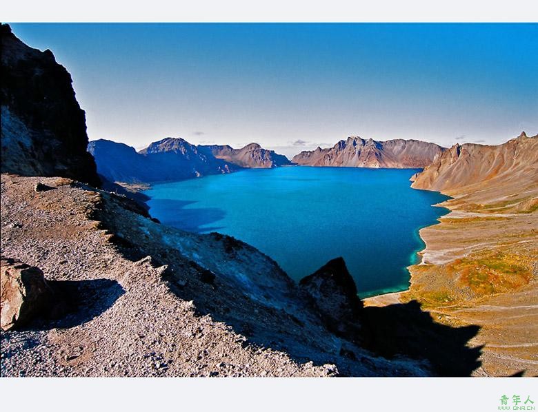長白山天池位于長白山主峰火山錐體的頂部,是一座火山口,經(jīng)過漫長的年代積水成湖。長白山天池海拔2189.1米,比新疆維吾爾自治區(qū)的天山天池高209米。天池略呈橢圓型,南北長4.4公里,東西寬3.37公里。集水面積21.4平方公里,水面面積9.82平方公里,水面周長13.1公里,平均水深204米,最深處達373米??傂钏?0.4億立方米。天池水溫為0.7°C——11°C,年平均氣溫7.3°C。天池像一塊瑰麗的碧玉鑲嵌在雄偉的長白山群峰之中,它是中國最高最大的高山湖泊。是東北三條大江——松花江、鴨綠江、圖們江的發(fā)源地。柔美的天池白云繚繞,五色斑斕波光嵐影,群峰環(huán)抱,蔚為壯觀。天池上空氣候多變,多云、多霧、多雨、多雪,云、霧、雨、雪把天池不僅裝點得美麗動人,而且更加虛幻神秘,迷迷茫茫。尤其盛夏季節(jié),風雨不定,變化頻繁,有時一日之內(nèi),甚至一小時之內(nèi)就可能發(fā)生幾次變化,剛剛還是驕陽直射、焦灼烤人,忽然間狂風大作、黑云滾滾、電閃雷鳴,大雨傾盆,山峰、湖面傾刻間淹沒在風雨之中了……一會又風和日麗,山峰、湖面又重新展露出來。雨后天池景色格外迷人,池邊群峰競秀,山野如洗;池上霞光萬道,長虹當空;池中奇峰倒映,波光粼粼。天池上空經(jīng)常云霧繚繞,置身其中使人頓覺騰云駕霧一般,白云在腳下飄逸。給人一種神秘莫測、飄飄欲仙的美感。有時還會出現(xiàn)池東日出池西雨,山上大雨,山下晴的奇異景觀。