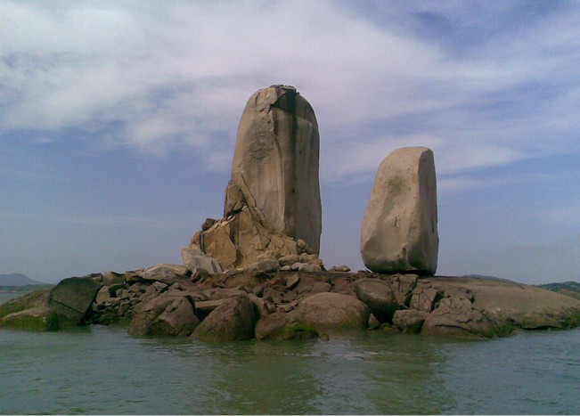 從看澳村岸邊坐渡船,十幾分鐘就到達礁石上,礁石底部是一組平坦完整的巖石。兩個石柱均由粗?;野咨幕◢弾r組成 東側的一個高達33米,胸寬9米,厚8米;西側的一個高17米,胸寬15米,厚8米。版權所有山東聊城聊之旅國際旅行社有限公司,轉載必究!兩個石柱的底部都是近似四方形體,直立在礁石上。據(jù)地質學家考證是世界上最大的花崗巖球狀風化海蝕柱。由于它的奇特壯觀,對游人有著強烈的震撼力和吸引力。建設部與中科院的專家稱之為:“壟斷性的世界級旅游資源。”明代旅行家陳第曾譽之為“天下奇觀”, 清朝女詩人林淑貞詩贊:“共說前朝帝子舟,雙帆偶趁此句留;料因濁世風波險,一泊于今纜不收.