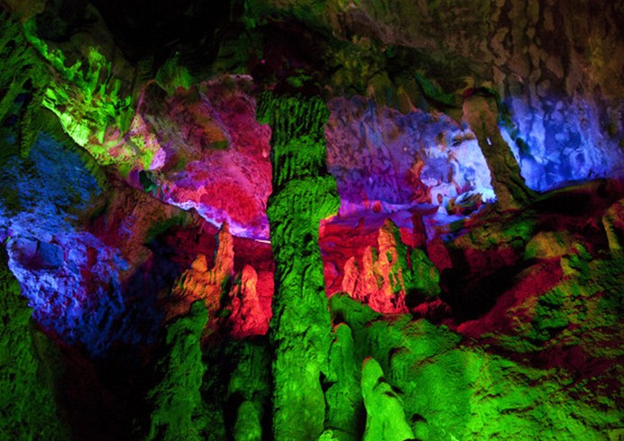 最妙的要數(shù)洞內(nèi)的"四絕"、"三奇"景觀。"四絕"為天溝、天板、天漕,玉螺賬,石鵝管和天外飛瀑。"三絕"為鐵索寒橋、雙井開(kāi)天、地下長(zhǎng)河。此外,"龍?zhí)堵?tīng)濤"、"群猴朝圣"、"洞中大龍湫"、"九龍壁"、"石葡萄"、"石褶裙"、"石針"、"石筍"、"葫蘆壽星"、"猴子撈月亮"、"八戒照鏡子"等景點(diǎn),以及王喬煉丹留下的勝跡,惟妙惟肖,令人目不暇接,嘆為觀止。