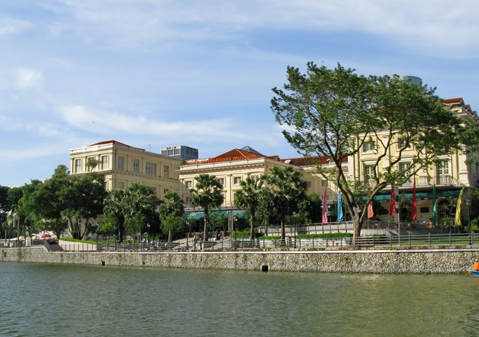1864年建於皇后坊的亞洲文明博物館 (Asia Civilisations Museum),早期是英國(guó)殖民地以及現(xiàn)任政府的辦公大樓,有著濃厚的英式新古典主義風(fēng)格的建筑。進(jìn)入該博物館內(nèi),重點(diǎn)在介紹新加坡歷史源流,當(dāng)游人進(jìn)入展廳,曾是沿著新加坡河岸發(fā)展的新加坡,不斷有中國(guó)帆船、印度船、 阿拉伯獨(dú)桅帆船、葡萄牙戰(zhàn)艦和武吉士人(Bugis)的縱帆船造訪這個(gè)質(zhì)樸的海港,館內(nèi)過(guò)往的影像面對(duì)窗外運(yùn)河龐大商船吞吐的海港,今非昔比的繁華景象,形成了一個(gè)強(qiáng)烈的對(duì)比。這就是亞洲文明博物館企圖讓訪客深入了解新加坡的特殊文化。19世紀(jì)英人萊佛士爵士為拓展英國(guó)在亞洲的貿(mào)易發(fā)展,奠定了這個(gè)小漁港的未來(lái)發(fā)展。