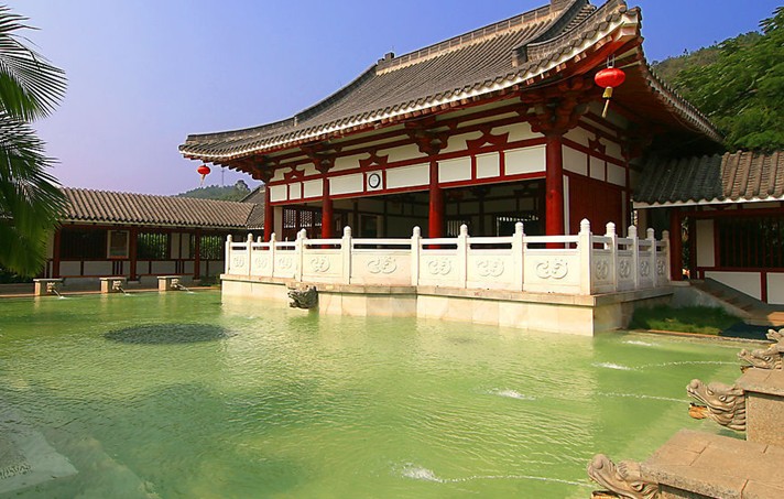 九龍池位于玉溪市州城西北10公里奇黎山下的九龍池,又名奇黎溪, 是當(dāng)?shù)刂募丫皠俚刂弧N挥谟裣兄莩俏鞅?0公里奇黎山下的九龍池,又名奇黎溪, 是當(dāng)?shù)刂募丫皠俚刂弧?據(jù)《重修九龍池碑記》載, 寺廟初創(chuàng)于清朝之前, 幾經(jīng)擴(kuò)建,到公元1729年(雍正七年),又“新作石橋,長(zhǎng)虹臥波,幾于騰空直上。繼修大寺閣,燃然一新,儼若普陀”。