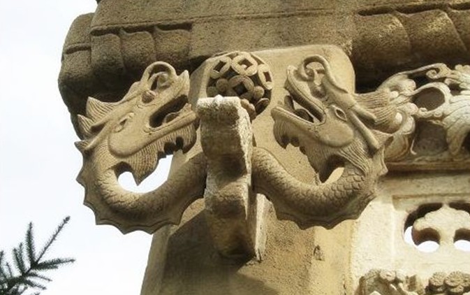 “母子節(jié)孝”坊中部額書(shū)“旌表贈(zèng)特進(jìn)榮祿大夫右都督戚寧妻一品夫人貞節(jié)閻氏”、“誥贈(zèng)特進(jìn)榮祿大夫中軍都督右都督指揮使前總督山東備倭戚景通”、“鎮(zhèn)守浙福江廣桂總兵都督國(guó)知前都督備倭戚繼光”。兩座牌坊巍峨挺拔,氣勢(shì)雄偉,構(gòu)圖豐滿(mǎn),周鏤精細(xì),具有很高的歷史價(jià)值和藝術(shù)價(jià)值,是國(guó)內(nèi)少見(jiàn)的明代大型石雕珍品。