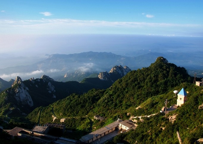 泰礴頂,位于山東省煙臺(tái)市境內(nèi),海拔922.8米,是昆崳山脈的主峰,也是膠東半島東端最高的山峰,屬長(zhǎng)白山系?,F(xiàn)峰頂建有山東省昆崳山電視轉(zhuǎn)播臺(tái)。峰頂端或是終年白雪皚皚,或是四季白霧漫漫,故古時(shí)稱其為大白頂。后來(lái)山中建起佛寺,釋家講大慈大悲,于是改稱大悲頂,而文人學(xué)士又以人間才高不過(guò)李白,膠東山高不過(guò)大白,諧其音而稱其為太白頂;文革期間,諱“白”改稱泰礴頂,據(jù)傳取泰山之脈而氣勢(shì)磅礴之意。在民間,百姓或因此峰貌似武士盔甲,稱為盔甲山,或因此山為昆崳山諸峰之主,似當(dāng)家的太婆,稱其為太婆頂。登上峰頂,四面群山一覽無(wú)余。若是春和景明,南北遠(yuǎn)眺,滄海茫茫;東西俯瞰,古城悠悠。但逢霧靄天氣,云氣蔥郁,似裊裊煙霞,若隱若現(xiàn),千柱翠峰,懸浮于悠然舒卷的白云之上,宛如凌虛飄渺的神山仙峰。更有一種云深霧濃的天氣,人在山巔,眼前惟見(jiàn)云煙橫流,耳畔只聞天風(fēng)呼號(hào),怒神泣鬼,驚心動(dòng)魄,幾不知我是仙是凡,但忘其身在天上人間。