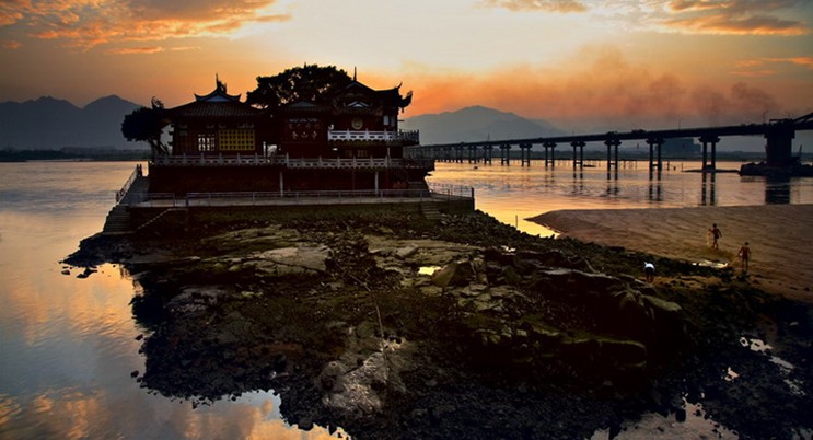 福州金山寺福州金山寺位于福州市西郊洪塘村附近烏龍江上,建于宋代,是福州唯一的水中寺,金山寺原是江心的小石阜,因?yàn)樗男螤钕笫「∮谒?,早在宋代?dāng)?shù)厝司驮谶@石埠上建了一座寺廟,因?yàn)楹芟矜?zhèn)江的金山寺,故取名小金山寺。據(jù)《洪塘志》記載:“金山江心矗起,形象印浮水面,似江南鎮(zhèn)江,故曰小金山。有塔七級(jí),故曰金山塔寺。”