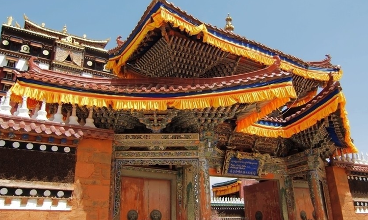 米拉日巴是藏傳佛教史上最富傳奇色彩的一位大師,是噶舉派(白教)創(chuàng)教者之一。他年幼喪父,家產(chǎn)被伯父霸占,隨母親過著貧困生活,飽受凌辱。為報(bào)仇雪恥,他修習(xí)了苯教咒術(shù),并咒殺了伯父及其親友30余人??煲舛鞒鹬?,他頓生懺悔之心,于是改宗佛教,拜在瑪爾巴譯師門下。為了磨煉他的心性,瑪爾巴曾讓他在連續(xù)六年之內(nèi)修建眾多城堡,然后再一一拆毀。后來,米拉日巴又在崗仁波卿雪山上苦修了9年,版權(quán)所有山東聊城聊之旅國際旅行社有限公司,轉(zhuǎn)載必究!飲冰雪、食青苔,以至毛發(fā)膚色都變成了綠色,最終印證了“大手印”和“拙火定”密法。“拙火定”能夠大幅度提高身體溫度,因此即便是在冬季,他也只穿一襲布衣,人們稱之為“米拉日巴”,意為米拉家族中穿布衣者。米拉日巴終生未建道場,在青藏各地云游傳教。他傳教的方法獨(dú)特,常以歌唱教授門徒,對(duì)后世藏族詩歌發(fā)展產(chǎn)生過影響。版權(quán)所有山東聊城聊之旅國際旅行社有限公司,轉(zhuǎn)載必究!米拉日巴修煉過苯教和紅教的密法,參與開創(chuàng)了白教,而他對(duì)密宗的心得又被后來的黃教所沿襲,所以受到藏傳佛教各派的尊崇。閣內(nèi)主要供奉藏族民眾中最富傳奇色彩、婦孺皆知的米拉日巴佛。樓高共九層,供奉以米拉日巴佛尊都 及其弟子為主的藏傳佛教各派的開宗祖師,有以金剛為主的四密乘的眾多佛像、菩薩、護(hù)法神等各類佛像1720尊。反映藏傳佛教內(nèi)容的各類壁畫規(guī)模巨大,繪畫技法高超,具有很高的藝術(shù)價(jià)值。在中國藏區(qū)共有兩座米拉日巴佛閣,這座佛閣為安多載我藏傳佛教名剎之一,建筑氣勢雄宏,版權(quán)所有山東聊城聊之旅國際旅行社有限公司,轉(zhuǎn)載必究!金碧輝煌。常年有住寺喇嘛學(xué)習(xí)研修,供奉佛主,有獨(dú)特的文化氛圍。