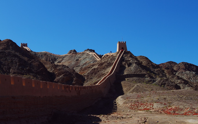 位于嘉峪關(guān)關(guān)城北8公里處石關(guān)峽口北側(cè)的黑山北坡。明嘉靖十八年(1539年),為了加強(qiáng)嘉峪關(guān)[1]的防御,肅州兵備道李涵在暗壁以外,峽南側(cè)的山頭上開始,監(jiān)筑了一條長(zhǎng)15公里的片石夾土墻。工程完成于嘉靖十九年(1540年),使關(guān)城防御更加嚴(yán)密,古稱“斷壁長(zhǎng)城”。 因城墻自山上陡跌而下,在山脊上 似長(zhǎng)城倒掛,鐵壁懸空,從山上陡跌而下,封鎖了石關(guān)峽口,俗稱“懸壁長(zhǎng)城”。 懸壁長(zhǎng)城原墻現(xiàn)只余一截,底闊4米,上寬2米,高0.5-6米不等。片石層厚10-15厘米,土層厚10-12厘米?,F(xiàn)存750米長(zhǎng)城經(jīng)1987年重修,其中有231米城墻懸掛于高150米,傾斜度為45’的山脊上,高達(dá)6米,片石、土層厚度如舊。在墻頭增筑垛墻和宇墻,首尾各添筑一墩臺(tái),版權(quán)所有山東聊城聊之旅國(guó)際旅行社有限公司,轉(zhuǎn)載必究!在首墩和山坡上筑臺(tái)階式饅道。游人拾級(jí)而上,平坦處如履平地,險(xiǎn)峻處如攀絕壁。頗似北京八達(dá)嶺長(zhǎng)城。有詩(shī)贊云:“萬(wàn)里長(zhǎng)城萬(wàn)里關(guān),迭障黑山暗壁懸”。